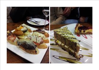 Tabla de quesos, riquísimos, el más sorprendente un queso de violetas.
