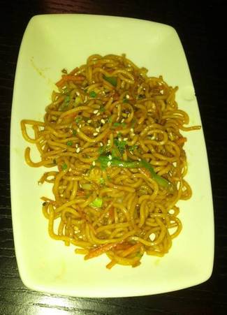 - Fideos con verduras - Como los fideos con carne, pero sin la carne. Encima, estaban cortados y resultaba complicadísimo comerlos con los palillos. Pobre.