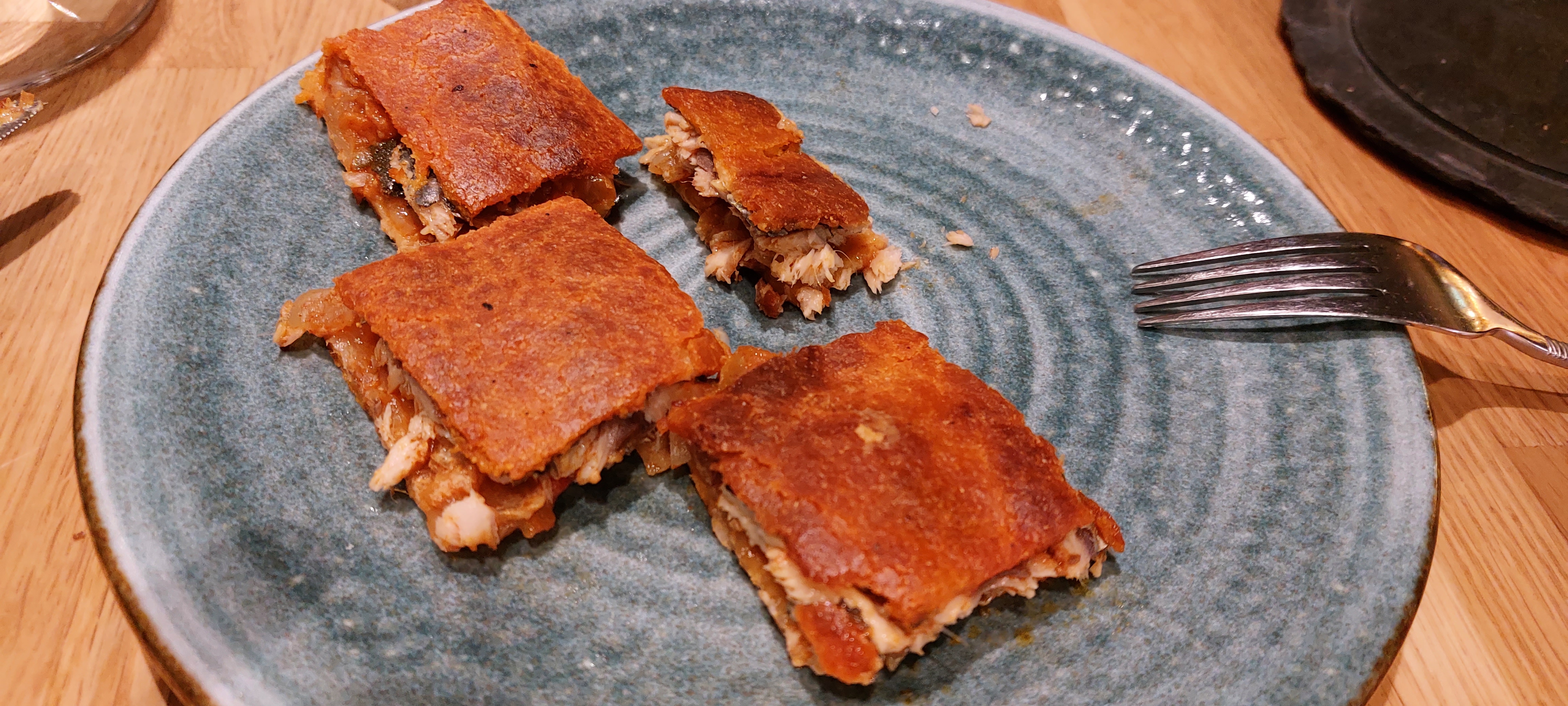 Empanada gallega con la masa bien empapada y mejor de relleno (me recordó la del desaparecido Rías Gallegas):