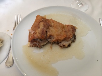 De segundo para compartir los cuatro pedimos carrillera de yermara , cabrito asado y manos de cerdo estofadas.