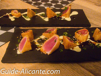 ─ Wantun de atún (1 x 6,00€). 7/10. Un plato sencillo en el que se deja que la materia prima destaque, muy bien de punto aunque un pelin frio en el interior a mi gusto. Según wikipedea el wantu enj una masa fina rellena, pero eso no fue lo que recibimos y eso es lo que ponía en la pizarra.