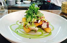 - Pulpo con yuca frita, mayonesa de hierbas frescas y rúcula - También le gustó bastante a mi mujer, aunque la presentación no tenía nada que ver con la de la foto de su página web.