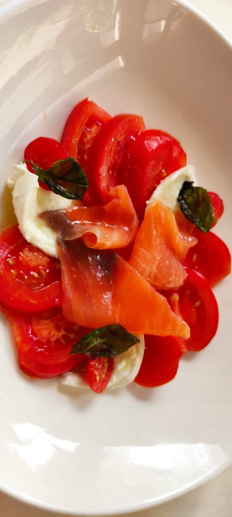 - Amanida de salmó, tomàquet i formatge fresc amb alfàbrega - Molt refrescant i gustosa.