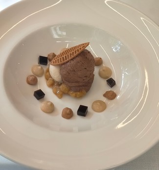 Per postres, unes fenomenals textures d'avellana i xocolata blanca.