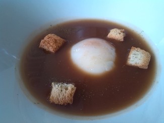 El huevo está más rico, más sabroso. Demasiado caldoso en mi opinión pero perfecto para entrar en calor como reza en carta. Vuelvo a pensar en huevos a baja temperatura degustados y.........