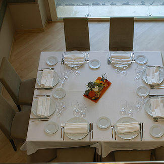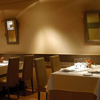 Cena para dos, local agradable con predominio de tonos claros, mesas con separación correcta y bien vestidas, iluminación tambié agradable y Ay...! Música ambiental (que manía tienen algunos con querer deleitarnos los ágapes con hilo musical!. Por suerte en este caso no era una selección de temas especialmente molestos, pero claro, eso va a gustos...)