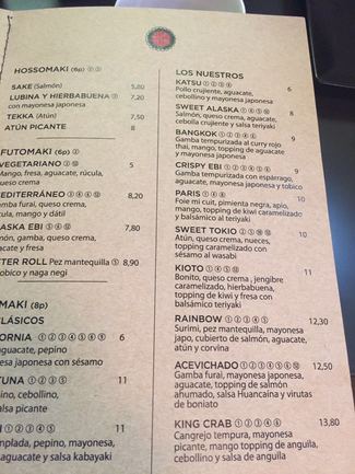 Los makis muy ricos,con uso de buenos productos y presentaciones esmeradas. Por poner un pero, el local tiene las mesas muy justas, que resultan ser algo incomodas por su pequeño tamaño y su cercanía a las mesas vecinas.