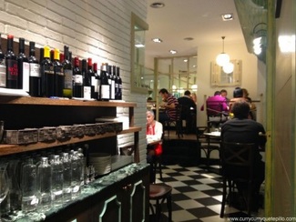 Local pequeño con unas 10 mesas bien distribuidas, buena luz que hace que sea muy agradable, ambiente musical suave, en la pared una pizarra donde están expuestos los platillos y tapas del día, aparte de la carta..