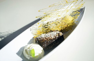 Se pidieron algunos postres para compartir (brownie, macedonia, crepes de chocolate) todos ellos artísticamente presentados pero siendo, según mi criterio, lo más flojito de la cena.