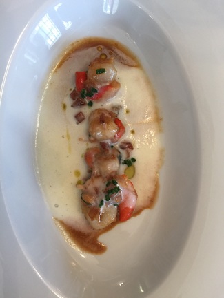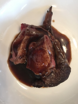 Aqui decidimos maridar los siguientes platos con un Burgogne del 2012 pinot noir de Domain régis Rossignol-Chańgarnier. Suntuoso suave persistente y muy adecuado aunque me quedo la duda de haber pedido un Ribera del Duuero dado que maridaría quizàs mejor con las delicias de caza que a conyinuación relataré. Estaba tan rico que tampoco me importó mucho la elección.