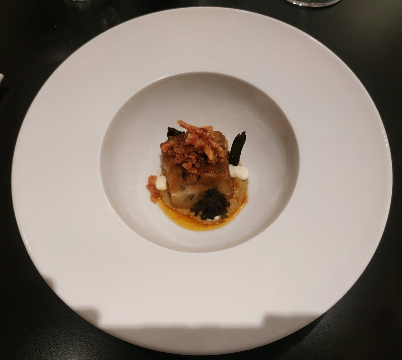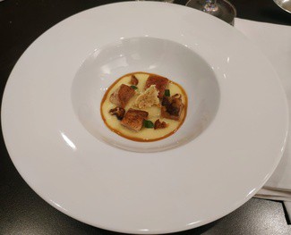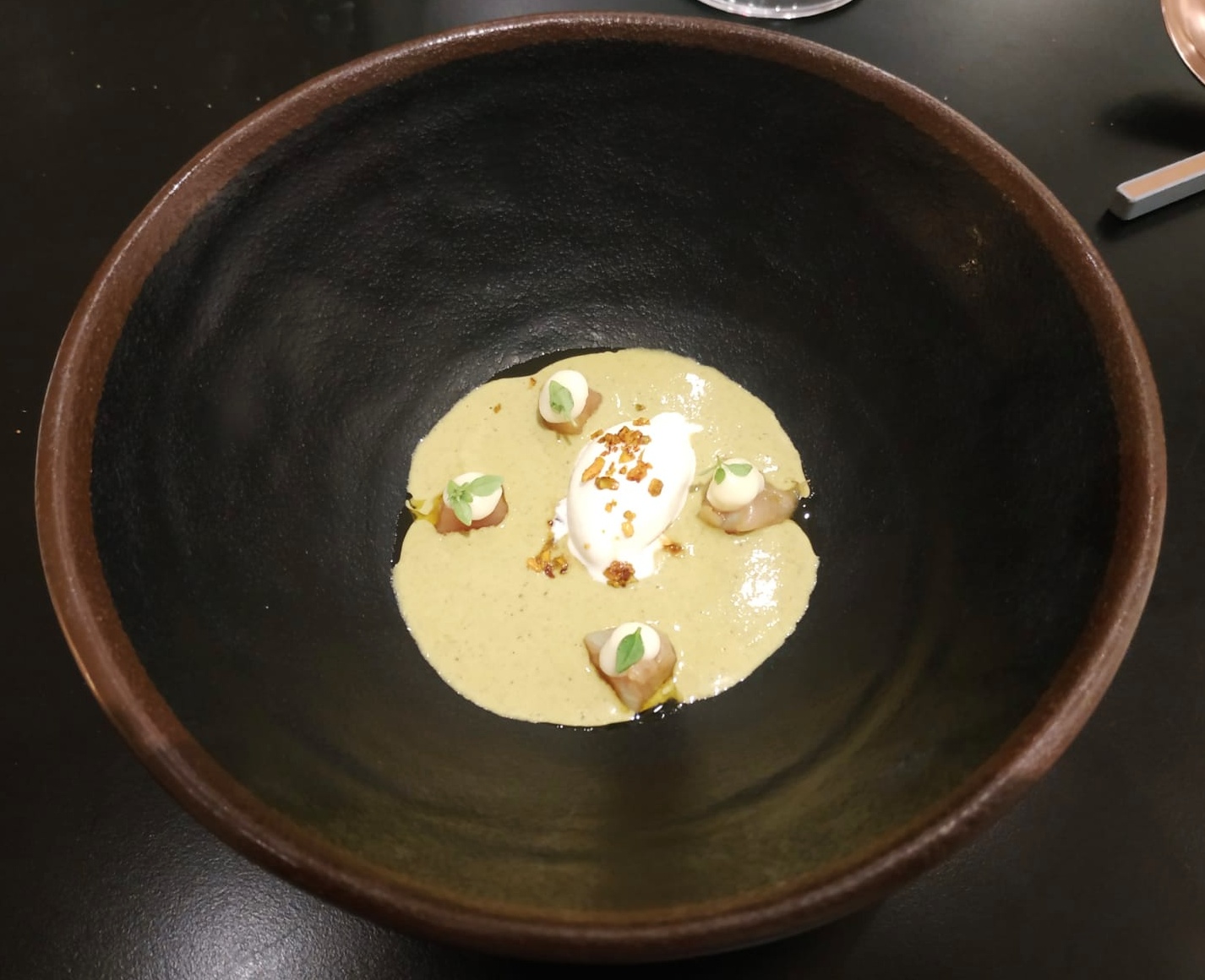 En cada uno de estos snacks, al igual que durante todo el servicio, fue el propio Bruno quien se acercó a trasladarnos el proceso creativo y pedirnos nuestras impresiones. Un placer ser tratado así. Seguimos con el menú principal: