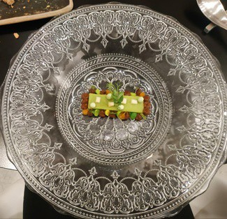 Una vez delimitados los espacios y, con la dificultad añadida de abstraerse del entorno, empezamos el menú degustación con los siguientes snacks: