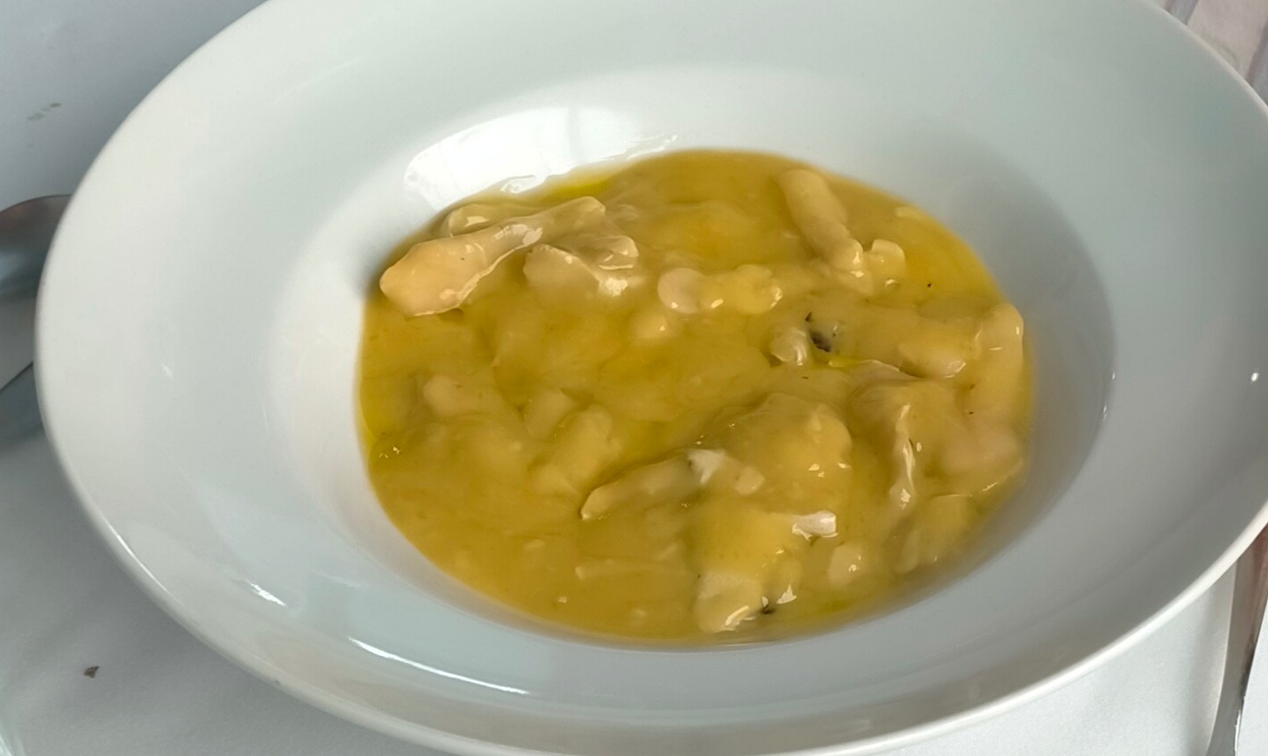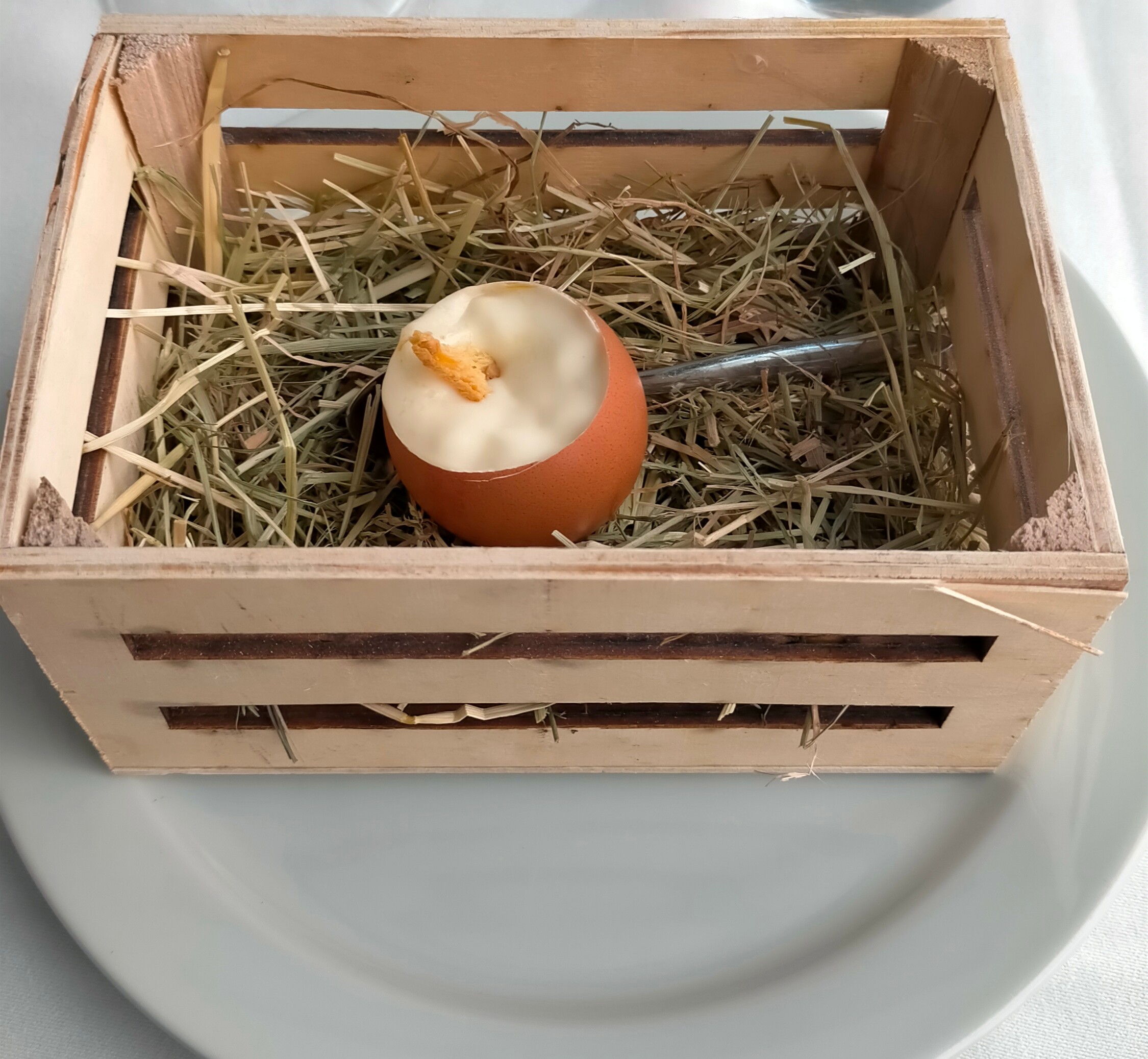 Empezamos con un aperitivo obsequio de la casa: huevo sin huevo... Original presentación y buenísimo.