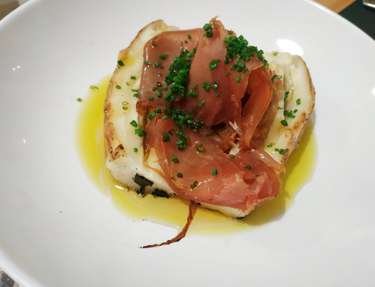 berenjena a la llama con mojama , muy buena