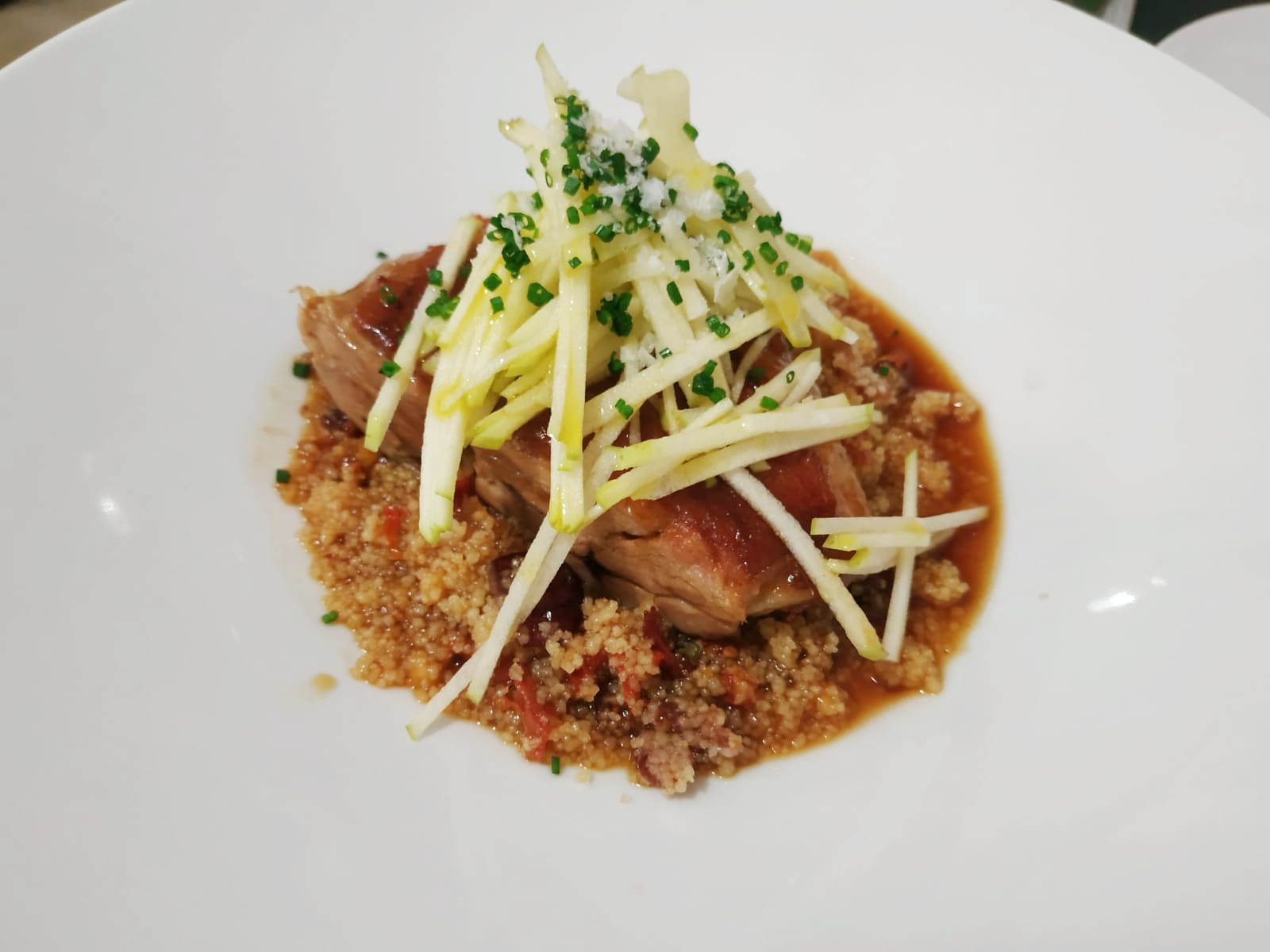 -Cordero con cous-cous: Un clásico de “El Baret de Miquel” en el que tengo entendido que trabajó el actual chef de Brou y que se reinterpreta en varios grandes restaurantes (Un cuiner a l’escoleta). Poco puedo añadir a un producto que me tiene enamorado y que, bien cocinado, es una auténtica delicia.