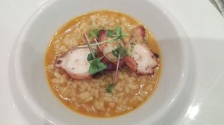 - Tiradito de pulpo con crema de ají amarillo y mayonesa japonesa: Buena cocción del pulpo, el toque de la cebolla encurtida junto el ají amarillo le daba un punto, pero en conjunto me resulto plano, sin chispa ni gracia, le faltaba algo de punch.