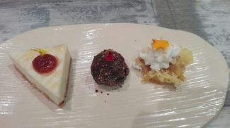 Menos mal que en los postres bajaron un poco el pistón (si en algún lado tienen margen de mejora es en este apartado) y nos dejaron reponernos del torbellino de sensaciones y de giros geográficos.