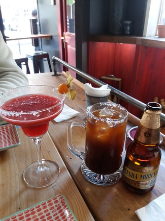 Nosotros bebimos una michelada bien especiada con cerveza negra modelo,una margarita de guayaba muy adictiva y dos potentes y aromaticos mezcales de Alipus.