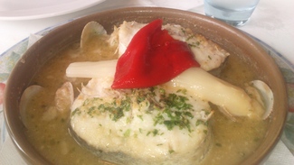 Nos apetecían unas fabes con almejas y aquí las recomendaban, así que no me lo pensé dos veces, tenían un menú especial por 30€, y de primero daban la opción de fabes con almejas así que para que complicarnos mas, ya llevábamos una semana de comidas fuera de casa, así que por economía y simplicidad nos vino muy bien este menú.