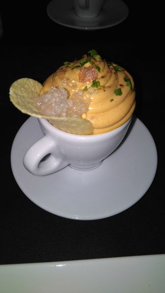 Fuimos a cenar con cinco amigos, y el pequeño restaurante nos pareció acogedor. Los platillos y tapas nos parecieron muy bien elaboradas y nos gustaron mucho. Estuvimos muy a gusto. El servicio de vino y cervezas artesanas, no es muy grande, pero suficiente y muy bien escogido. Me encanto el pulpo a la plancha y las bravas servidas de forma original en un vaso con cuchara.. En general todo estaba bueno. Pero los postres, eran una delicia. El Gin tonic gelificado, fantástico. Bien el servicio y el local, Volveremos