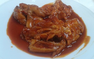 La nota de la comida es de la globalidad de lo degustado. Las patas son caso especial, son de un diez sin duda alguna. Menú de fin de semana a 20 euros,