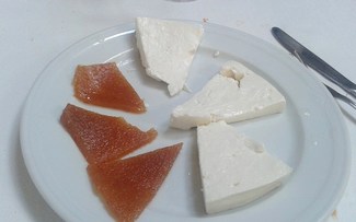 Postres variados como no podía ser de otro modo. Yo, para no endulzar demasiado el paladar y poder así disfrutar de mi última copa de Alvarinho, me pido un queso fresco. Mientras que por la mesa pasan un arroz con leche, un helado de yogur y un par de goxuas que al parecer estaban riquísimos.