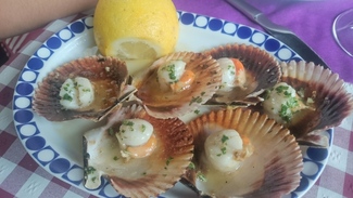Unas volandeiras , abundantes y muy ricas, plancha y con un refritillo suave, 20€, 20 moluscos.