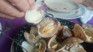 Almejas a la sartén, XXL, enormes, muy buenas, regaladas, 15€.
