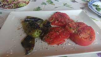 Pimiento verde y tomates a la brasa, espectacular, me da para llevar , que buenos….