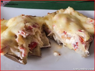 ─ Milhojas de berenjena. Láminas de berenjena que por dentro llevaban verduras y bacon y por encima una bechamel.