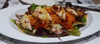 Mezcla de varias lechugas, unos tomatitos cortados en trocitos y cuatro txipis de muy buena calidad y muy bien tratados. Lo mejor de la ensalada, sin duda alguna. El resto correcto.