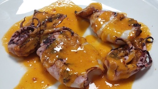 - Calamar plancha con salsa romescu.