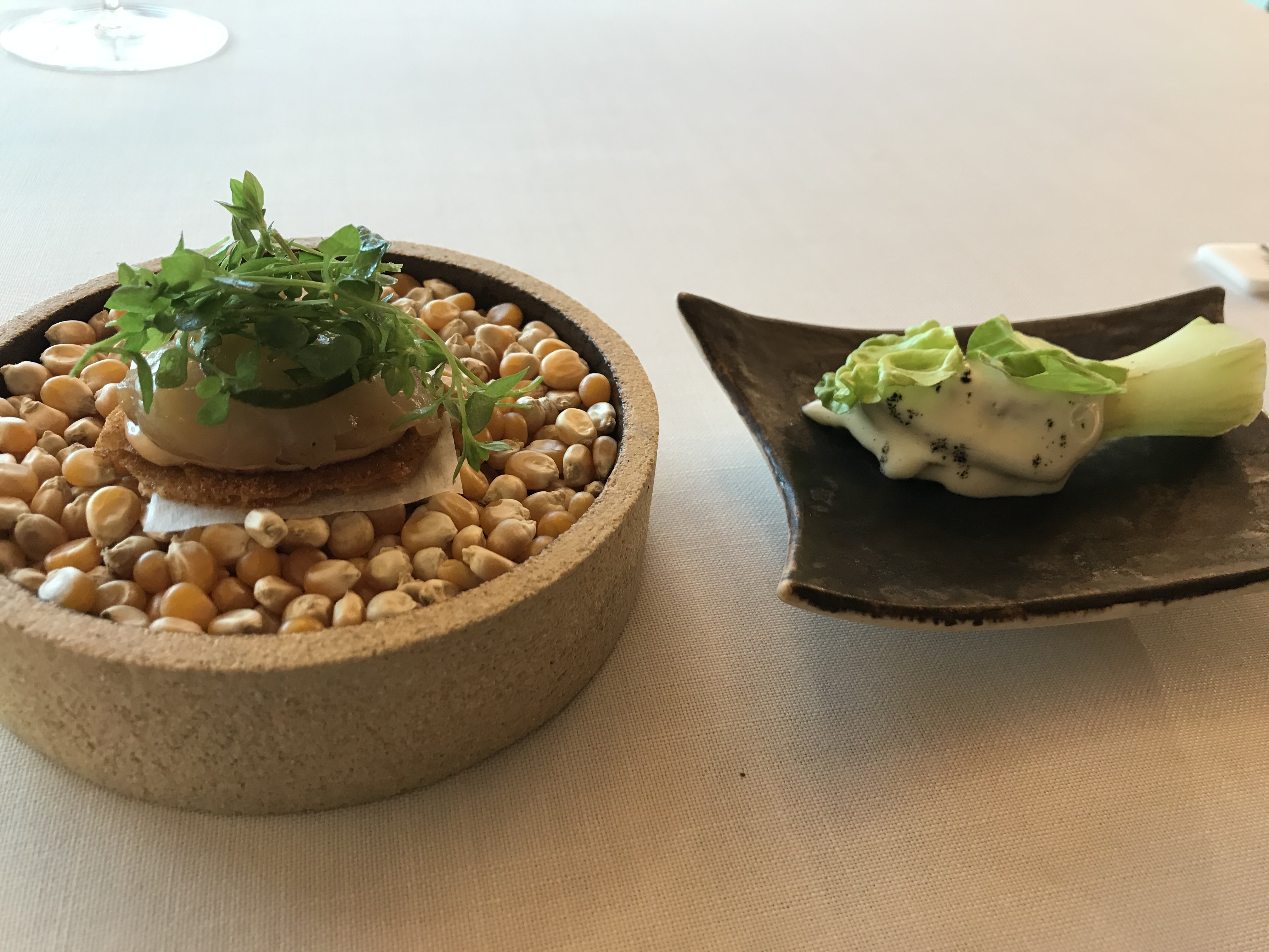 Los Aperitivos de infusión de setas y piñón, bollo cremoso de champiñones y queso azul, ventresca de atún y algas , cremoso de erizo y raifort excelentes de comienzo 10, así con champagne Fleury BdN te quedas flipado.