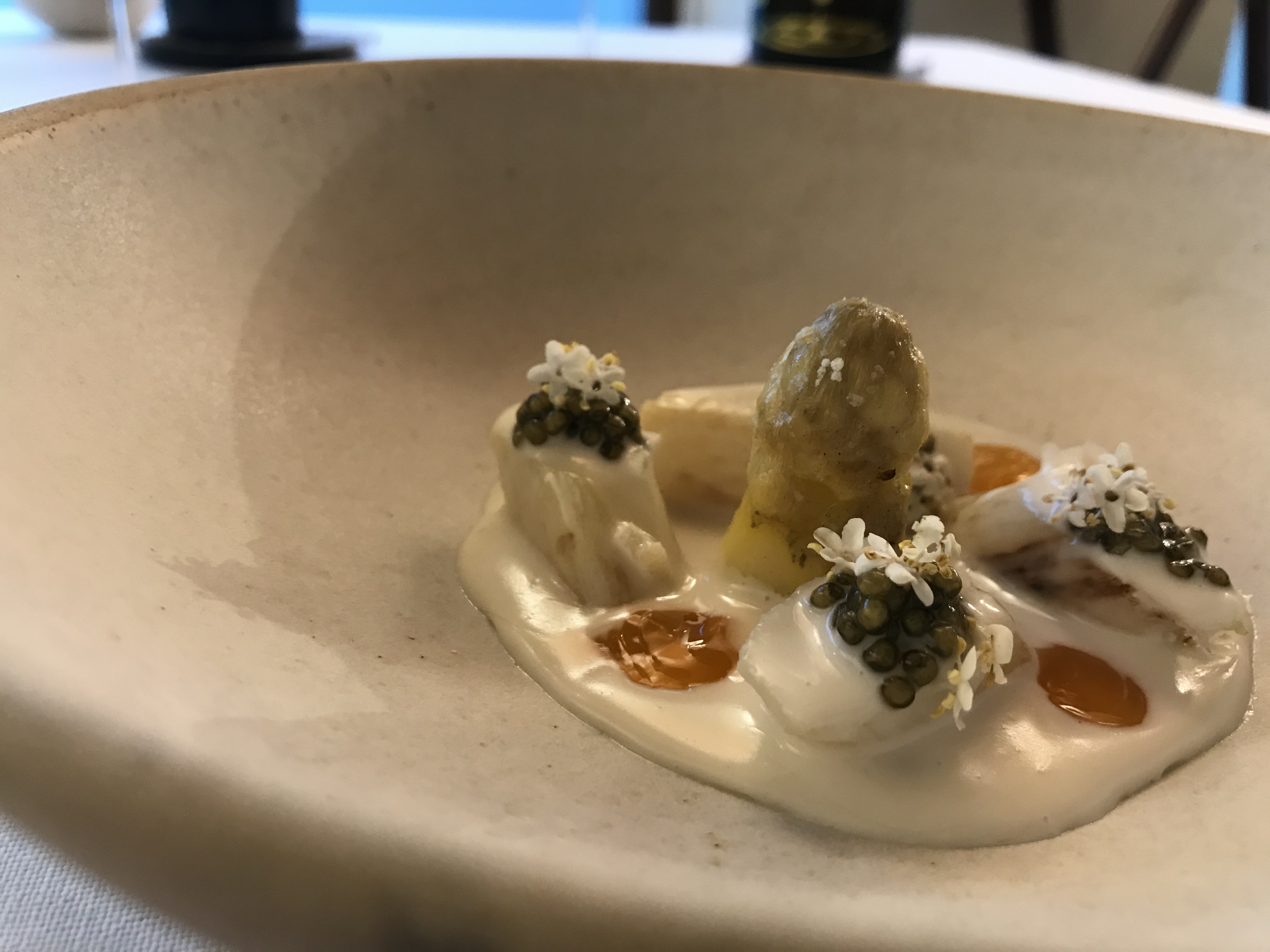 Navajas , cebolla y espárragos ( mantequilla sauco y caviar ...tremendo sabor y textura) te dejan bien, verduras suaves muy ad hoc terminadas.