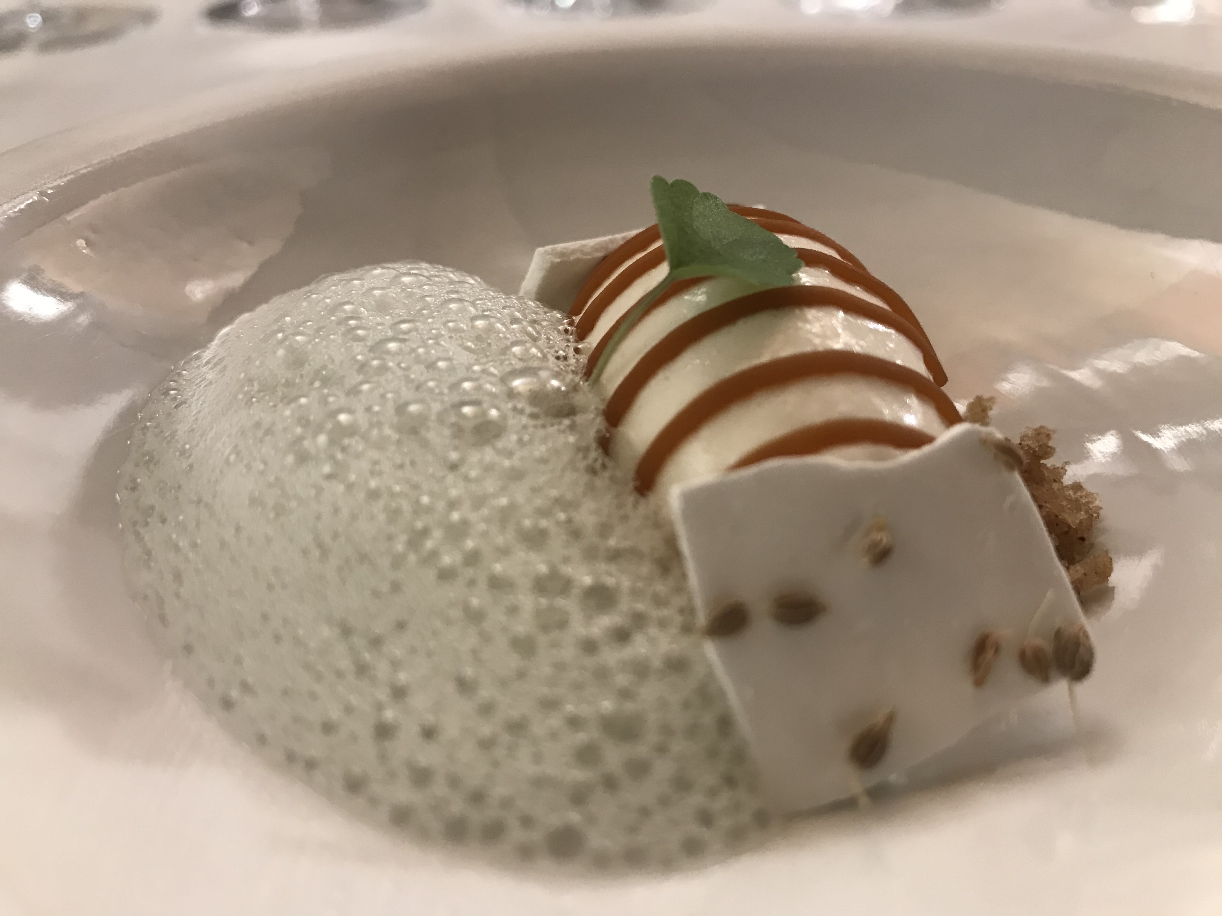 No pienso (siento) lo mismo al acabar la comida. Cada plato me ha ido llevando por su camino. Es una comida delicada, esencial, eminentemente nítida. Absolutamente nítida. Item más en el maridaje de los vinos. Estos acompañan a los platos. No buscan complementarlos. No buscan confrontarlos. Los acompañan como un elemento más del plato y también estos se muestran de forma nítida; como si fueran un ingrediente más de cada plato.
