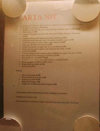 Carta de vins correcta per a aquesta mena de locals, amb força referències catalanes, de gamma mitjana-baixa, preus x2 aprox. i copes correctes. Servei consistent en obertura, tast i primer emplenat.