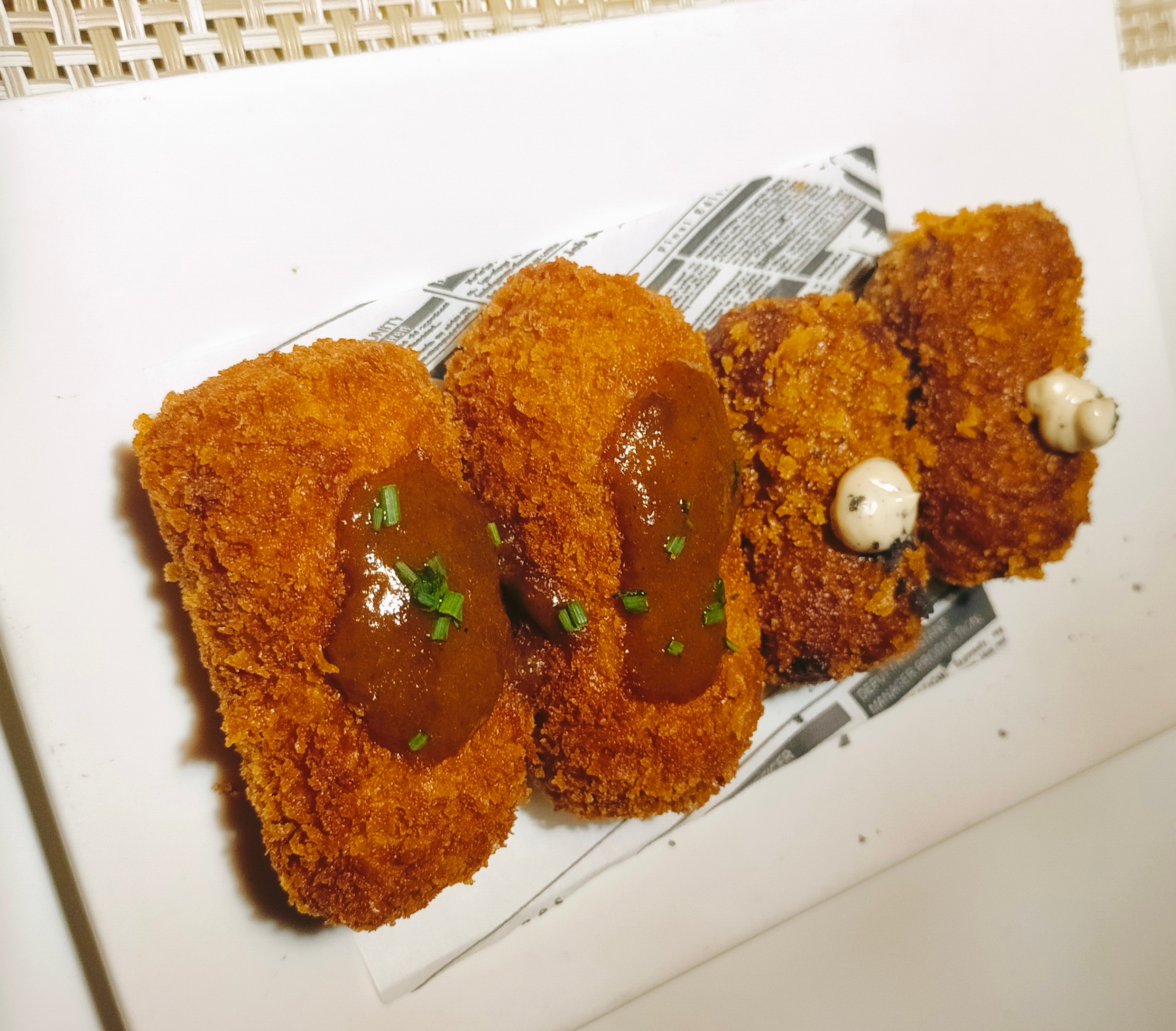 - Croquetes de foie i ceps (2,5 €/ut) - Molt gustoses i meloses. Arrebossat molt cruixent. Són les petites.