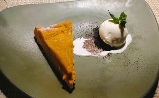 - Pastís de xocolata blanca amb gelat de llet merengada (6,50 €) - El pastís no tenia gaire gust de xocolata blanca i em semblà sec.