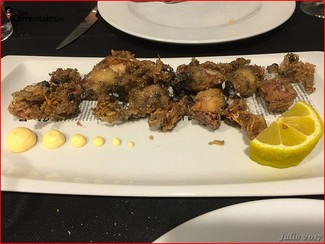 ─ Puntillas (1 x 12€). Excelentes. La verdad es que casi podría decir sensacionales, pero tuvieron el pequeño fallo de que la decoración con unas escamas de sal, fue un poco exagerada y algunas de ellas estaban un poco saladas. Si a lo anterior añado que es un producto que perdimos con cierta frecuencia ya que nos gusta mucho y que probablemente sean los mejores que tomado en mi vida, creo que queda dicho todo.