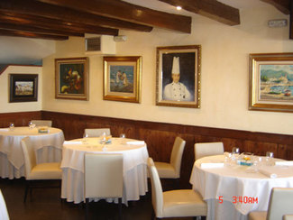 Restaurante de postín ubicado en el paseo marítimo de Sitges. El comedor es acogedor, bonito, bien decorado y muy bien distribuido. La vajilla, así como los manteles y cubiertos de calidad.