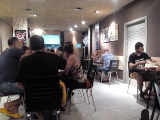 Amb el fred que feia al carrer, dintre el local s'estava calentó. Ens posaren a una taula que tenia una bombeta just al damunt, així que aquest cop no vam tenir problemes amb la il·luminació. Com que hi havia un parell de grups grans, les taules no estaven tan juntes i vam sopar força a gust.