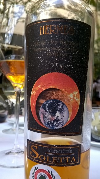 Trento espumoso (Ferrari Perlé), Campania (Falanghina), Piemonte " a ciegas" (Barbera d´Asti MONTRUC99), Hermes vino dulce de Cerdeña (Isola del Nuraghi de Moscatel).