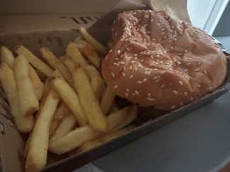 . cheeseburger x 1: carne de vaca con queso cheddar con patatas y salsa de tomate. La preferida de la más peque.