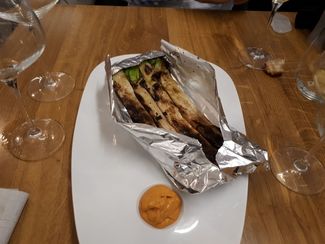 Entre las opciones otro local, no daré nombres, con mas empaque y de novedoso traslado, pero que tardo demasiado en darnos un simple menú, sin presiones de ninguna índole , un poco cansado de cierta desidia , nos acercamos a probar , también en la zona de Gros , este local , nos gusto tanto la atención , la cocina, las formas , la profesionalidad , que directamente se lo comentamos , les dimos un precio final para un menú con vinos , 110€ iva incluido y rápidamente tenia todo decidido , todo fue por las ganas de esta chavalería y como no , por el resto de patas de una mesa gastronómica .