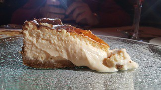 El clasicismo continúa en los postres. La tarta de queso horneada se ha convertido casi en un clásico de la capital desde la irrupción de Cañadío en Madrid. En Carbón Negro, la tarta de queso es notable destacando por su textura y su galleta echando a faltar tanto algún elemento secundario que aporte un ligero contraste como un pellizco de mayor intensidad sápida.