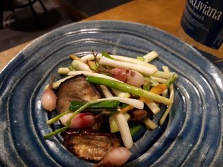 Después de tomarnos un pintxo en Casa Urola y probar la famosa tarta de queso de la Viña, nos dirigimos hacia Gros, donde esta este restaurante, pilotado por Ismael Iglesias, que ya participa de otro local Kata 4-Oyster Bar , en Rita , creo , pretende una cocina mas clásica y elegante con sus toques novedosos , local nuevo , bonito diseño , moderno , no muy grande , mesas altas , que como siempre tardan mas en llenarse y varias mesas bajas , llenas , pese a estar fuera de la zona turística y costarnos un poco encontrarlo , no conocemos la zona , estaba lleno , por lo que deduzco que la mayoría era gente de Donosti , y algún bilbaino curioso .