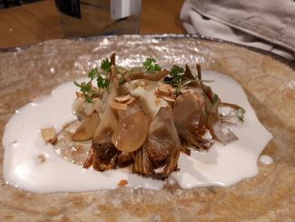 Conclusión, local apartado del turismo bestial de la ciudad, clientela de la ciudad y algunos que por el faceboock nos enteramos de estas cosilla, cocina sencilla, buen producto y siempre un contraste bien puesto, para lo graso, acidez, para la alcachofa con parmentier uvas, sencillo, si, pero hay que hacerlo.