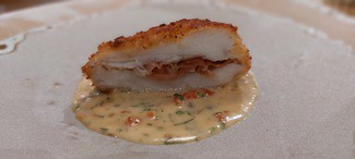 - Corvina asada con tabellas y setas: Se elabora un guiso con la legumbre, trompetas de la muerte y camagrocs, una de las setas más apreciadas en gastronomía. Sobre éste, se coloca el lomo de la corvina que se asa en una sartén de hierro colado, como las de toda la vida. Se culmina con unos brotes de pimpinela.