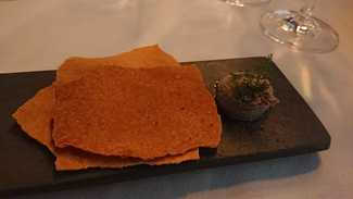 El aperitivo de pate de sardina con crujiente pan sardo, correcto.