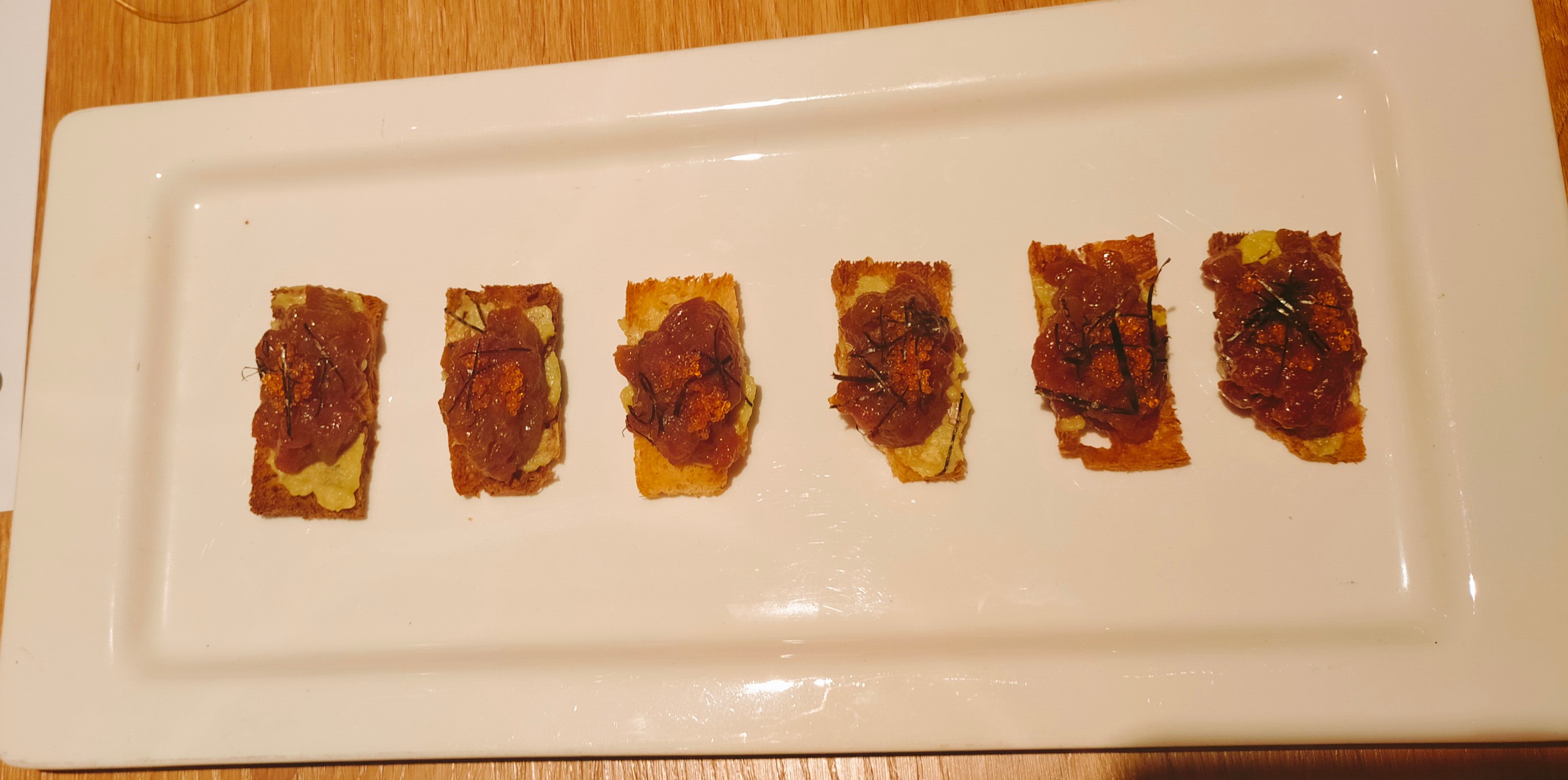 - Tartar de atún con aguacate y cruasán (19 €) - Nos encantó.